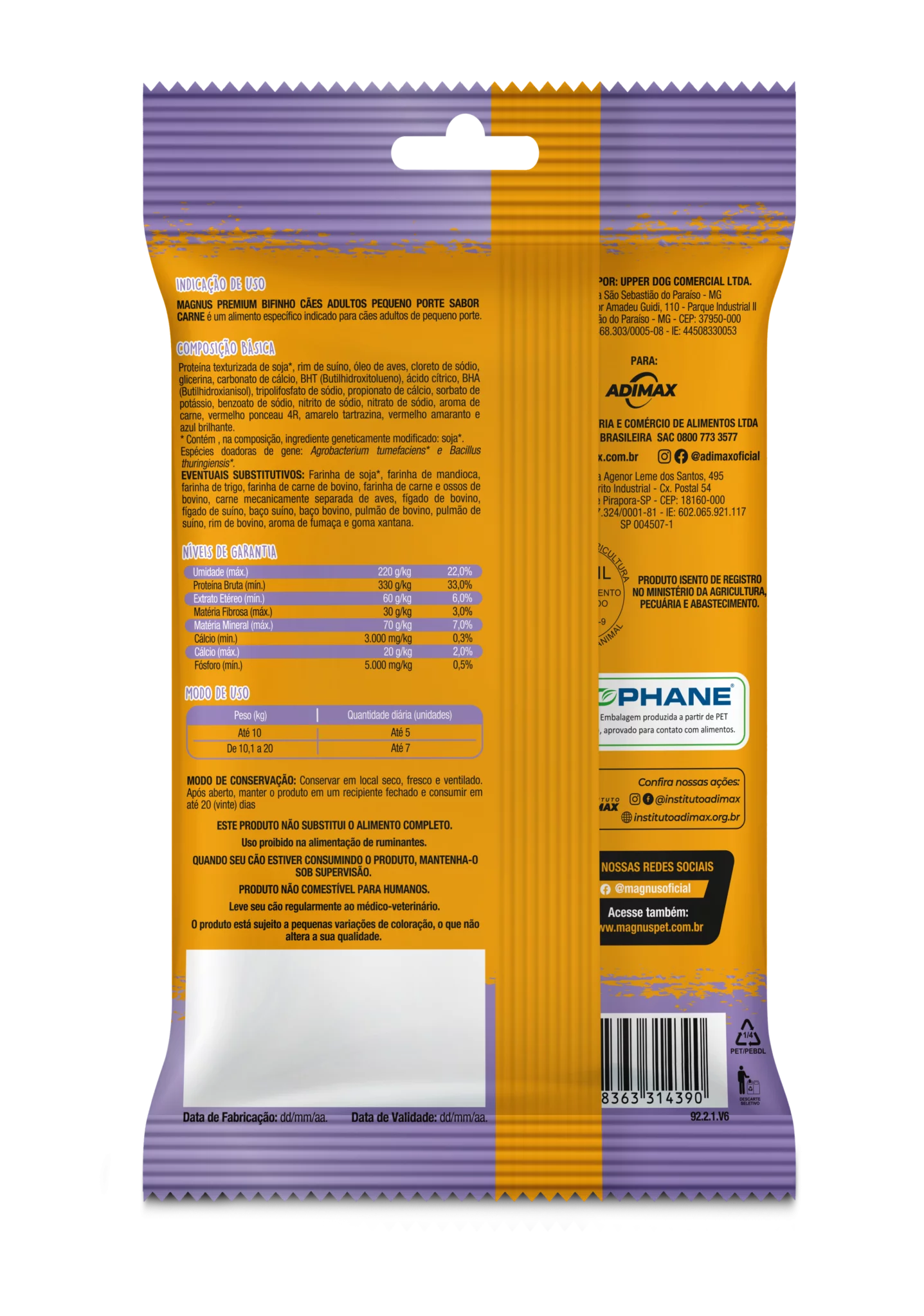 Magnus Bifinho Mastigável Sabor Carne é um alimento específico indicado para cães adultos de portes mini e pequeno. Aproveite os momentos de diversão e alegria com o seu melhor amigo e ofereça um petisco saboroso e de alta qualidade.