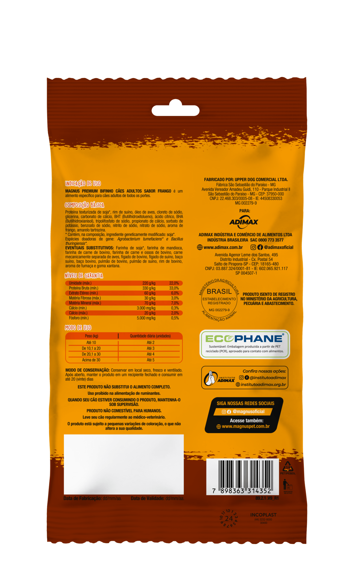 Magnus Bifinho Mastigável Sabor Frango é um alimento específico indicado para cães adultos de todos os portes. Aproveite os momentos de diversão e alegria com o seu melhor amigo e ofereça um petisco saboroso e de alta qualidade.