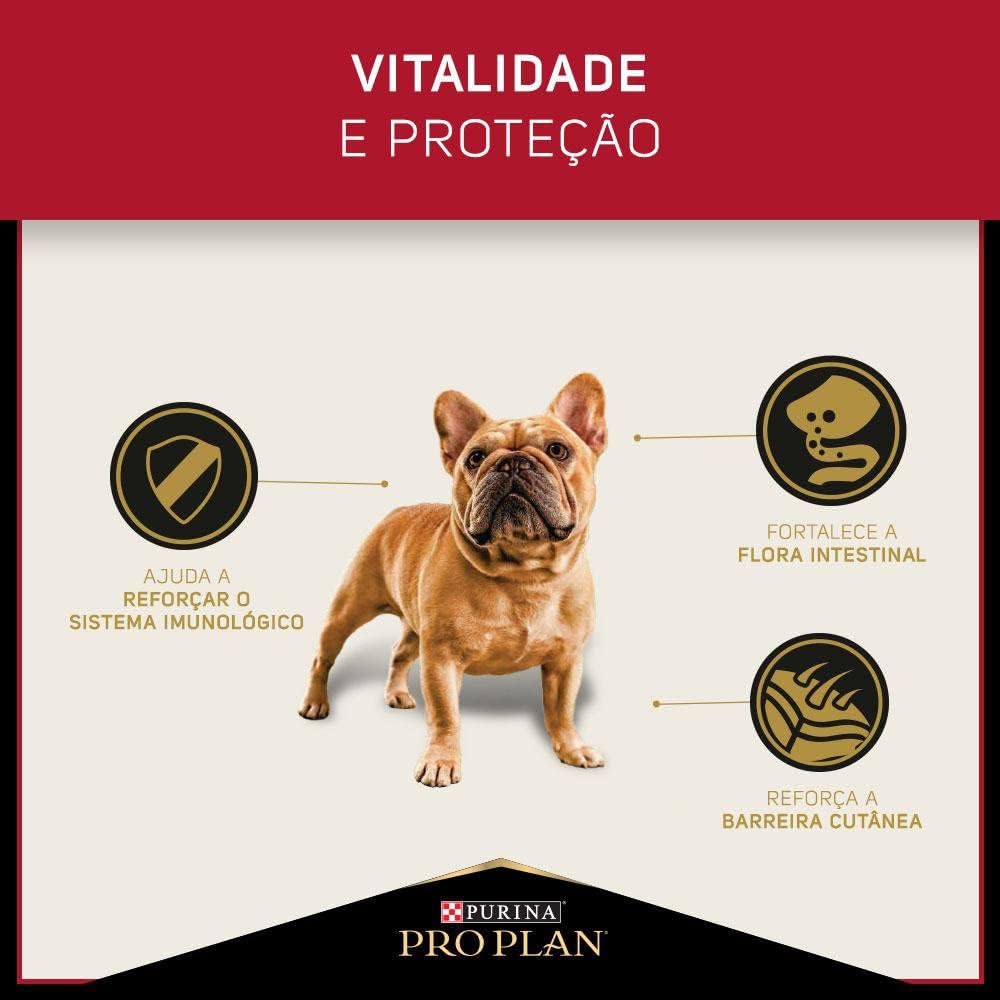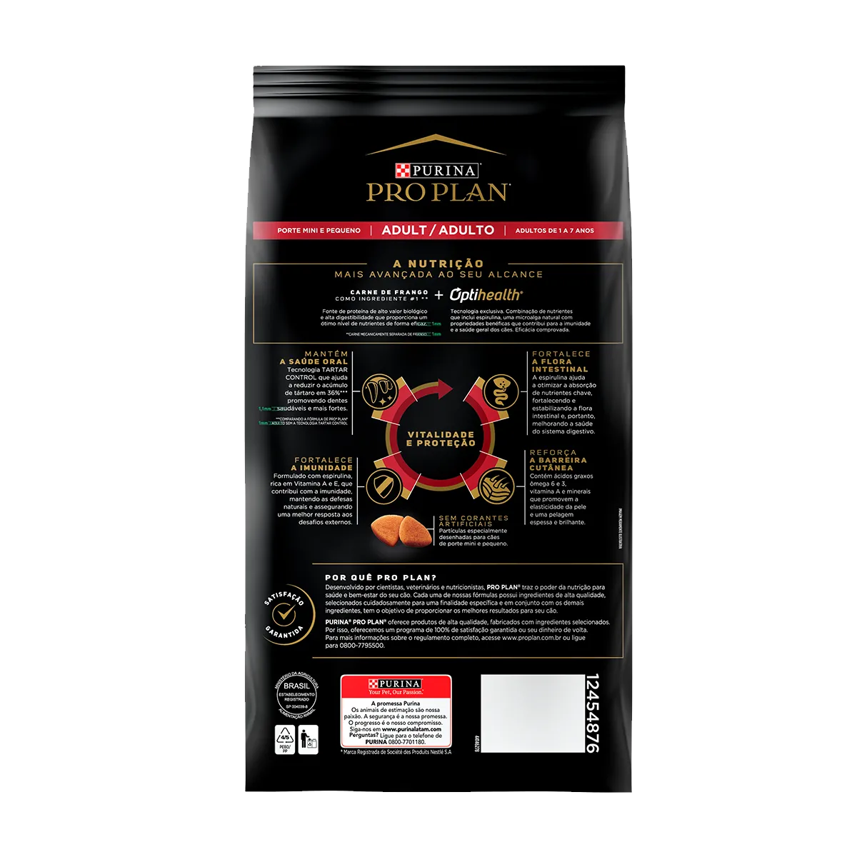 PRO PLAN® Adulto Minis e Pequenos é um alimento Super Premium 100% completo e balanceado, formulado especificamente para cães adultos de porte mini e pequeno com atividade normal. Elaborado com carne de frango como primeiro ingrediente e a tecnologia exclusiva OPTIHEALTH®, uma combinação de nutrientes que inclui espirulina, uma microalga natural com propriedades benéficas que contribui para a imunidade e a saúde geral dos cães. Eficácia comprovada para vitalidade e proteção, agora com tecnologia TARTAR CONTROL para a saúde oral.