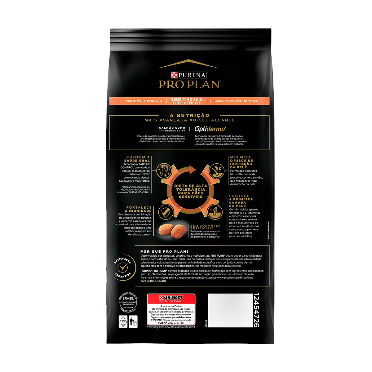 PRO PLAN® Pele Sensível é um alimento Super Premium 100% completo e balanceado, formulado especificamente para cães adultos de porte mini e pequeno com pele sensível. Com salmão como ingrediente #1 e a tecnologia exclusiva OPTIDERMA®, é formulado com altas contribuições de ácidos graxos ômegas 6 e 3 que reforçam a proteção cutânea e promovem uma pele saudável e uma pelagem brilhante.